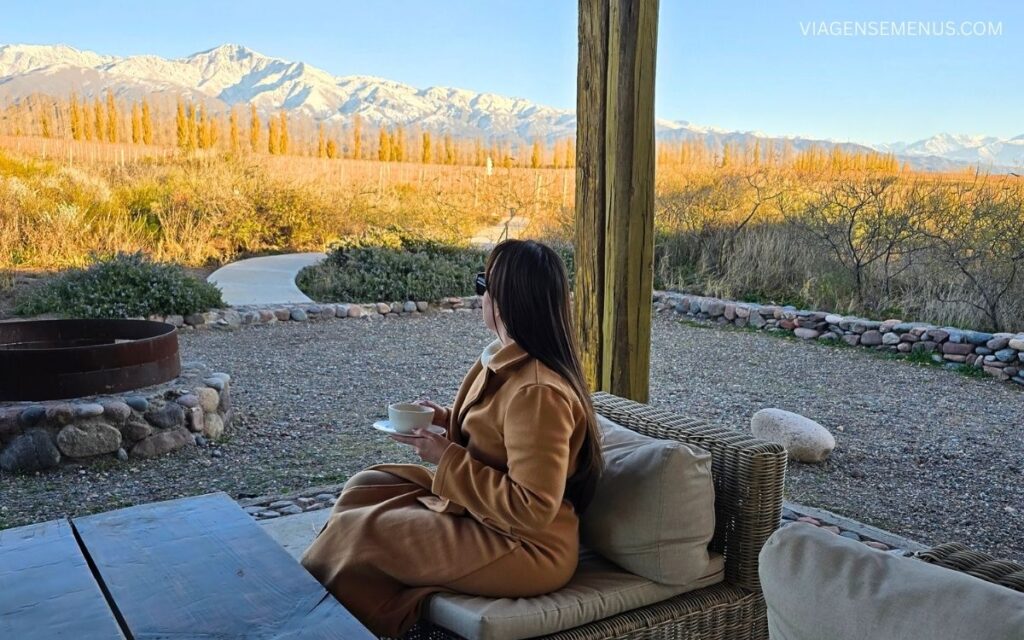 Alguns contam com terraços privativos, com vistas lindas da Cordilheira dos Andes, e rede (sim, rede para descansar vendo os Andes! Os cearenses piram, haha).