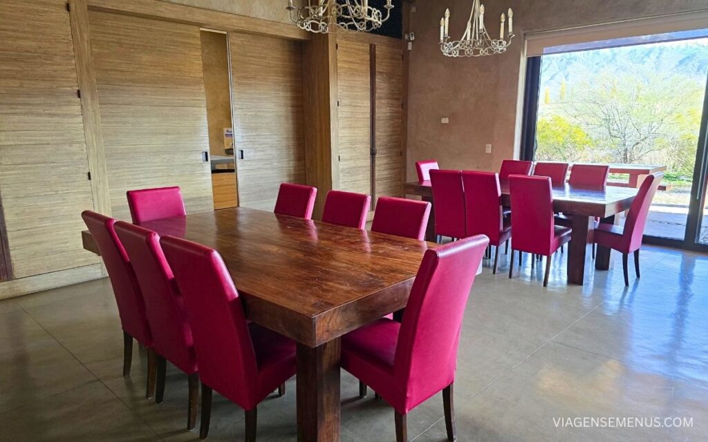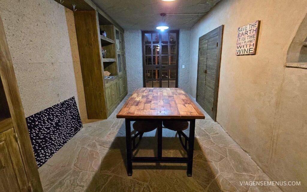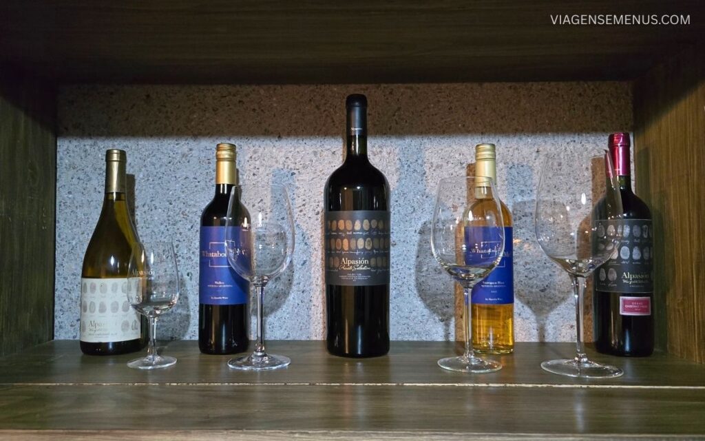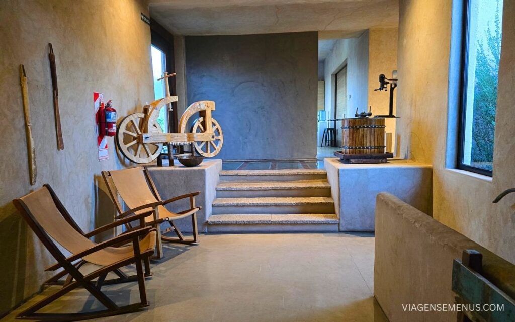 Também passamos pela sala de degustação da bodega, um ambiente intimista com uma adega, onde os hóspedes podem degustar os vinhos da vinícola (que são excelentes, falo mais sobre eles no tópico do restaurante La Huella).