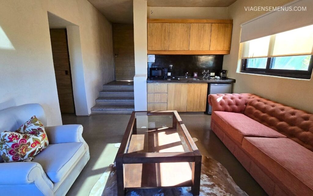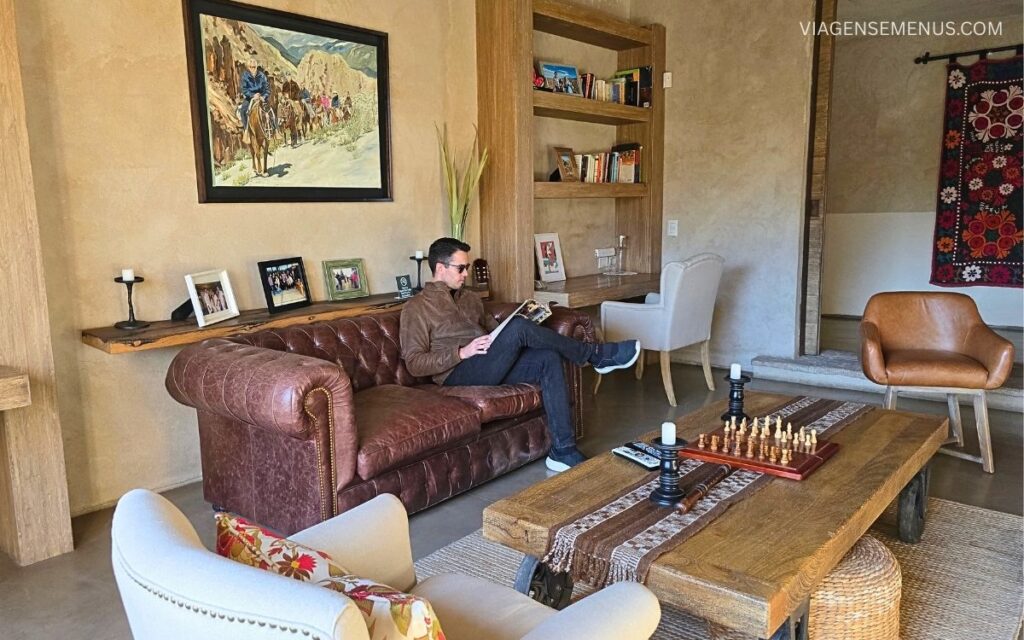 A experiência no Alpasión Wine Lodge começa com uma sensação de estar em casa: tons terrosos, móveis acolhedores e uma aura familiar que vem das fotos e dos detalhes cuidadosamente distribuídos pelos ambientes.