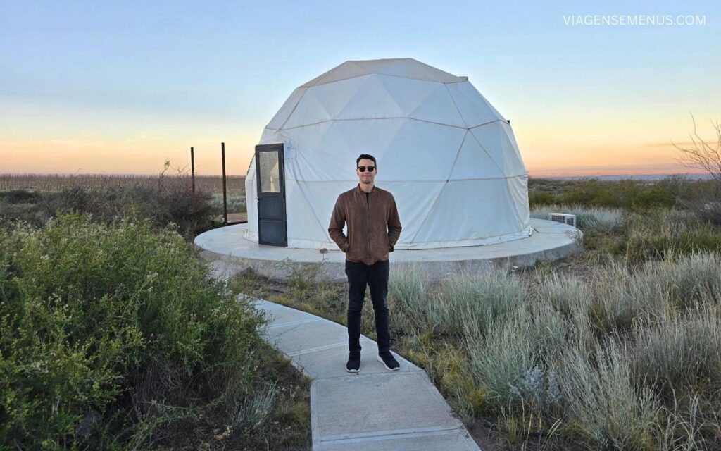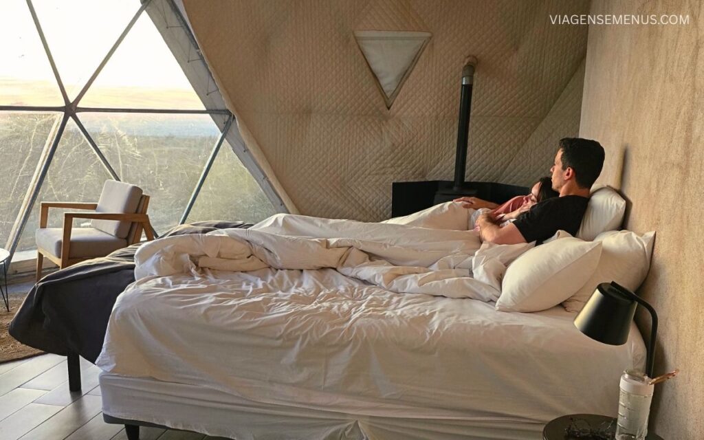 Nós escolhemos ficar em um domo, também chamado de tenda glamping, nossa primeira vez nesse tipo de acomodação!
