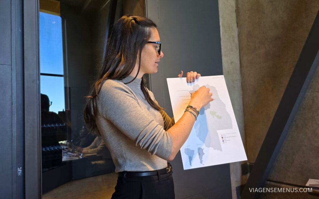 A cada taça, uma nova explicação: sobre o terroir, a uva, a filosofia por trás do vinho, as notas sensoriais e a história de cada rótulo.
