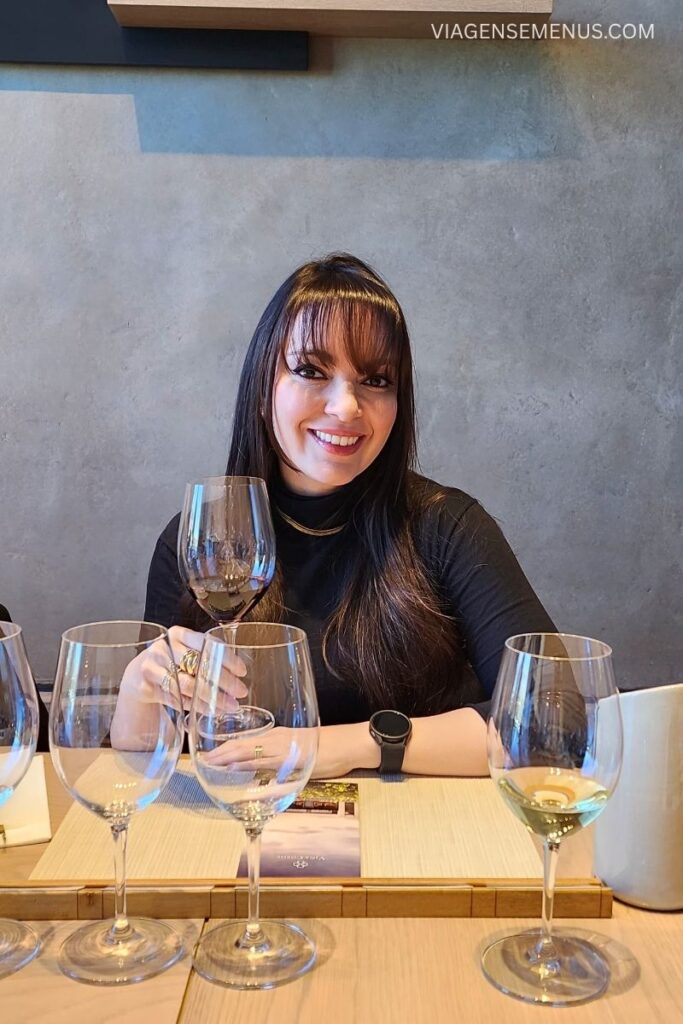 Provamos cinco rótulos das linhas Bramare e Vinculum, todos acompanhados por petiscos delicados, pensados para realçar e equilibrar cada vinho.