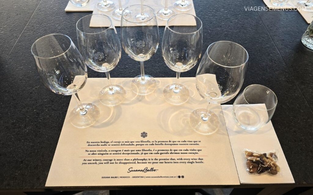 A bodega Susana Balbo oferece cinco opções de experiências de degustação, cada uma com um valor diferente.